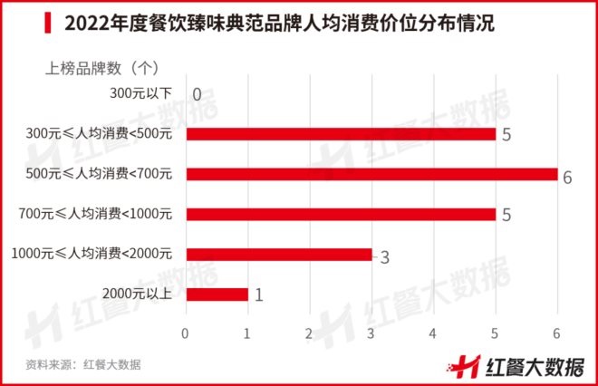 整體來看,人均消費價位在700元以上的品牌有9個,人均消費在300~700元之間的品牌有11個。這意味著高端品牌在人均消費價位上有著一定程度的分化,可以為消費者提供較為多元的選擇。