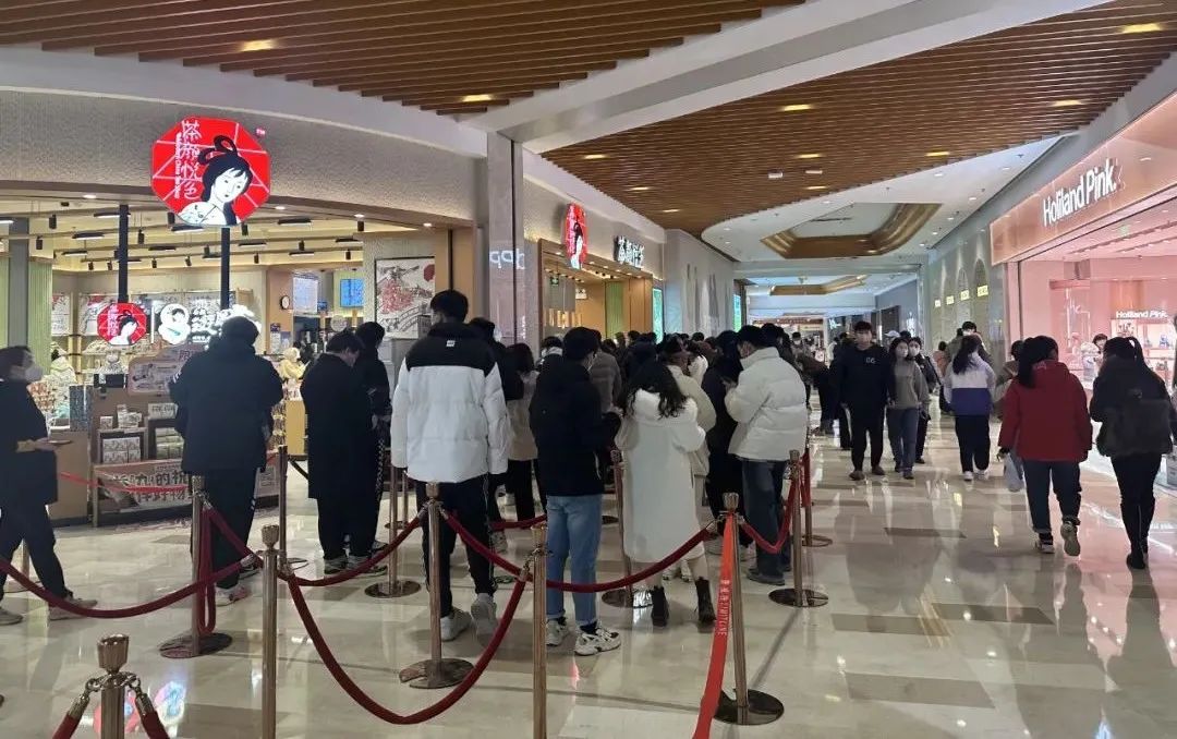 南京景楓購(gòu)物中心內(nèi),正在排隊(duì)茶顏悅色的人們 /作者攝