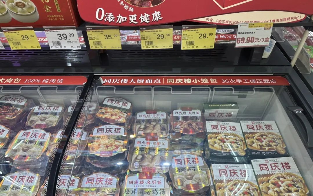 超市內(nèi),同慶樓的預(yù)制菜冰柜 /作者攝