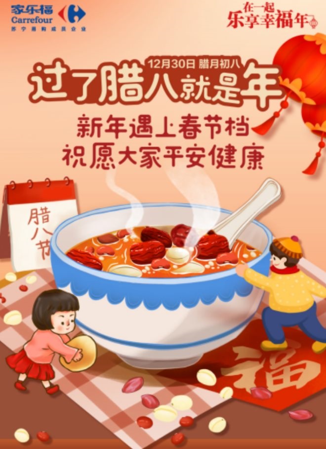 臘八這天的習俗,南方和北方雖然不盡相同,但大同小異。喝臘八粥是南北共有的習俗,不同之處在于味道與配料。由于北方寒冷,人們習慣在臘八粥里加一些糖,而南方的臘八粥不僅有甜的,還有咸的。因此在家樂福全國門店,消費者已習慣提前備好傳統(tǒng)臘八粥食材,包括大米、小米、玉米、薏米、紅棗、蓮子、花生、桂圓和各種豆類(如紅豆、綠豆、黃豆、黑豆、蕓豆)等都深受消費者喜愛。