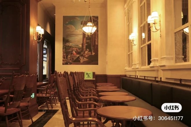 首店在空間設(shè)計(jì)上以和風(fēng)建筑為骨架,融入西式裝飾風(fēng)格。呈現(xiàn)現(xiàn)代且華麗的店內(nèi)空間。