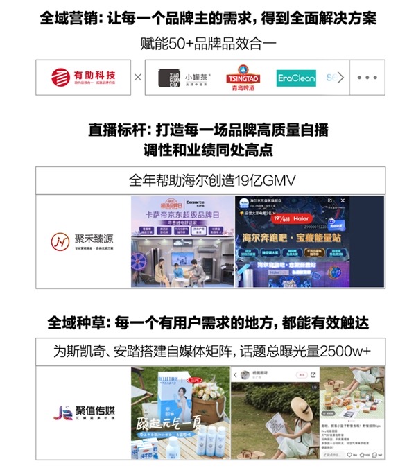 值得買科技旗下諸多子公司業(yè)務均成果斐然:全鏈路營銷服務商“星羅”的DP業(yè)務在服務能力、業(yè)務價值層面頻獲認可,先后榮獲抖音電商“鉆石服務商”、“FACTOR企業(yè)認證”等榮譽,并入選商務部優(yōu)秀案例;全域運營服務商“有助科技”全年助力50+品牌實現(xiàn)品效合一;互動營銷服務商“聚禾臻源”通過品牌自播來提升品牌曝光和銷量轉(zhuǎn)化,全年幫助海爾創(chuàng)造19億GMV;專注于全域內(nèi)容種草營銷的“聚值傳媒”打通了種草拔草場景,激活品牌勢能,幫助品牌完善了內(nèi)容生態(tài)布局。