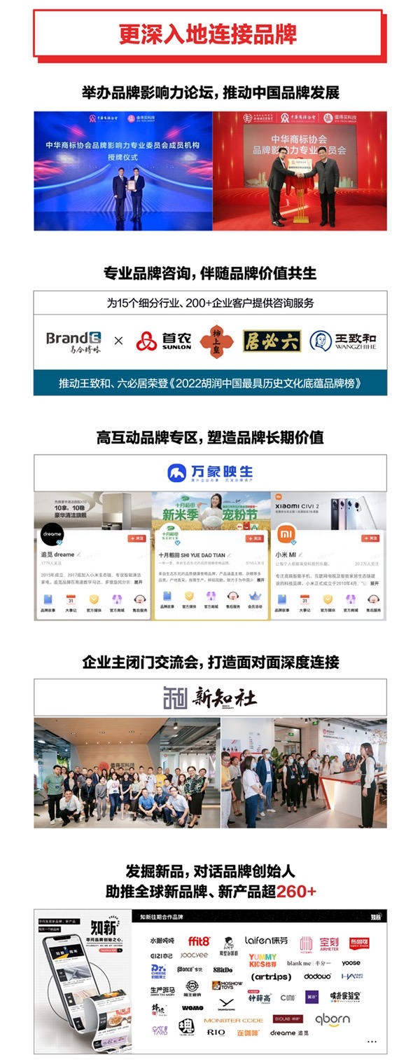在營銷服務之外,值得買科技同樣注重行業(yè)伙伴在發(fā)展中的痛點與難點,并提供相應定制化服務。如旗下子公司“萬象映生”通過結(jié)構(gòu)化消費信息,搭建出高互動型品牌專區(qū),成為海信、小米、追覓等品牌的門戶入口,同時在百度、360、微信等更多場域深耕,搭建品牌商城,幫助品牌經(jīng)營私域用戶,塑造長期價值!笆姥兄笖(shù)”專注于指數(shù)型產(chǎn)品解決方案,2022年已舉行多場品牌影響力發(fā)布會,并推出相關(guān)成果、報告等供行業(yè)及企業(yè)參考。子公司“易合博略”則為客戶提供一站式品牌咨詢服務,目前已為15個細分行業(yè)、200+客戶提供專業(yè)咨詢服務,并推動王致和、六必居榮登《2022胡潤中國最具歷史文化底蘊品牌榜》。