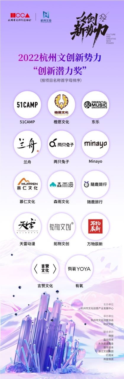 自2015年開始舉辦的文創(chuàng)新勢力活動,由杭州市文化創(chuàng)意產(chǎn)業(yè)發(fā)展中心主辦,杭州市文化創(chuàng)意協(xié)會、杭州文投承辦。一直聚焦文化產(chǎn)業(yè)的新業(yè)態(tài)、新技術(shù)、新模式、新消費、新場景、新生力量,尋找具有強(qiáng)大商業(yè)爆發(fā)力和投資價值的創(chuàng)新型文創(chuàng)企業(yè),培育一批數(shù)字文化行業(yè)單項冠軍、隱形冠軍。經(jīng)過連續(xù)8年的舉辦,如今這項活動已具有廣泛的行業(yè)知名度和影響力,見證了一大批創(chuàng)新企業(yè)在文創(chuàng)新勢力評選中脫穎而出,并快速成為杭州乃至全國文創(chuàng)新興領(lǐng)域的頭部企業(yè),在行業(yè)里起到了很好的引領(lǐng)示范作用。
