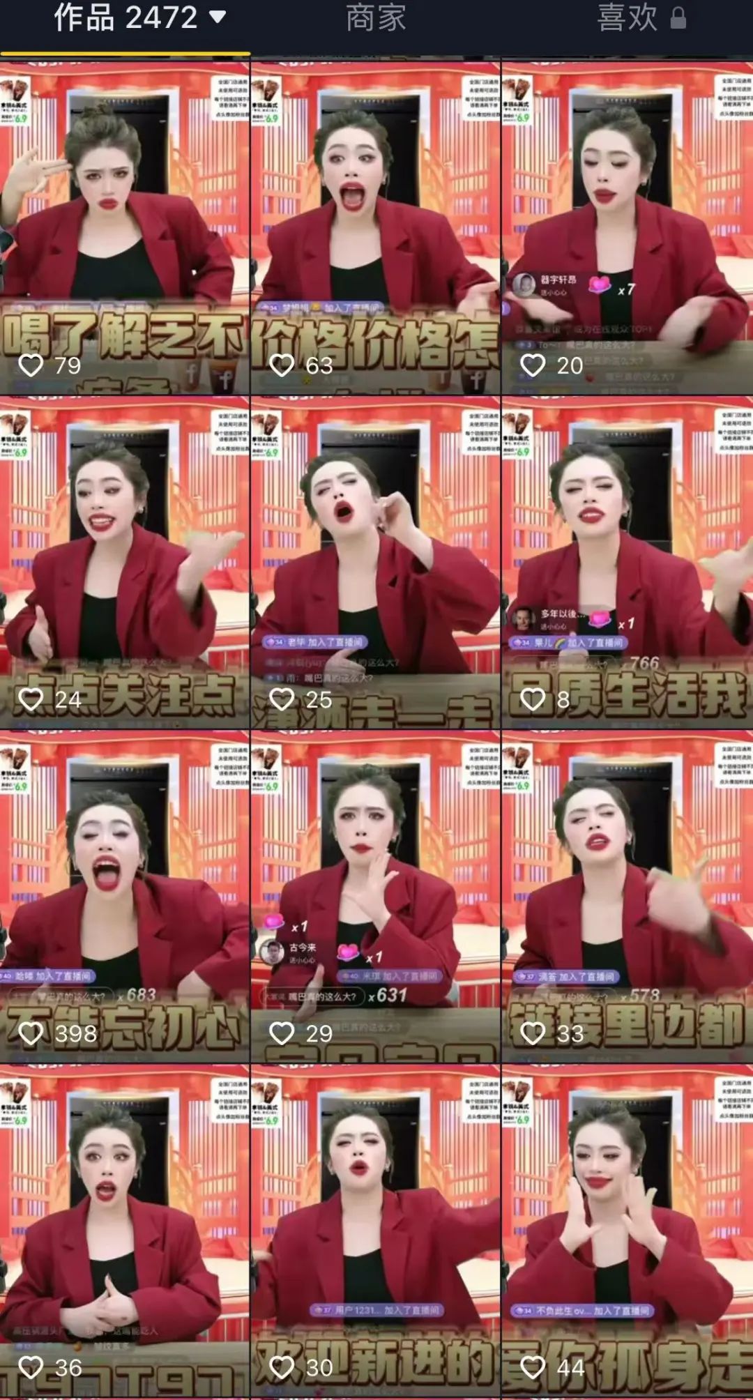至于T97,才剛剛爆紅沒多久的T97似乎完全沒有表現(xiàn)出這方面的焦慮情緒,直播間的“魔性喊麥”的盛況一如既往,甚至隱約覺得其直播間正在有意無意的強化、復制和模仿“大嘴妹”這一特性,甚至到了幾乎每個主播都有意無意的在化妝時把嘴畫的更大。