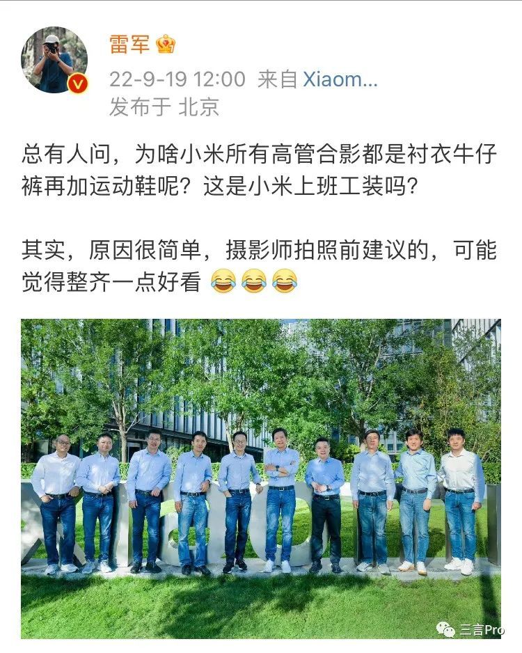 至于這次高管不再以牛仔褲打扮拍照這點(diǎn),其實(shí)與小米進(jìn)入職業(yè)經(jīng)理人時(shí)代很契合。