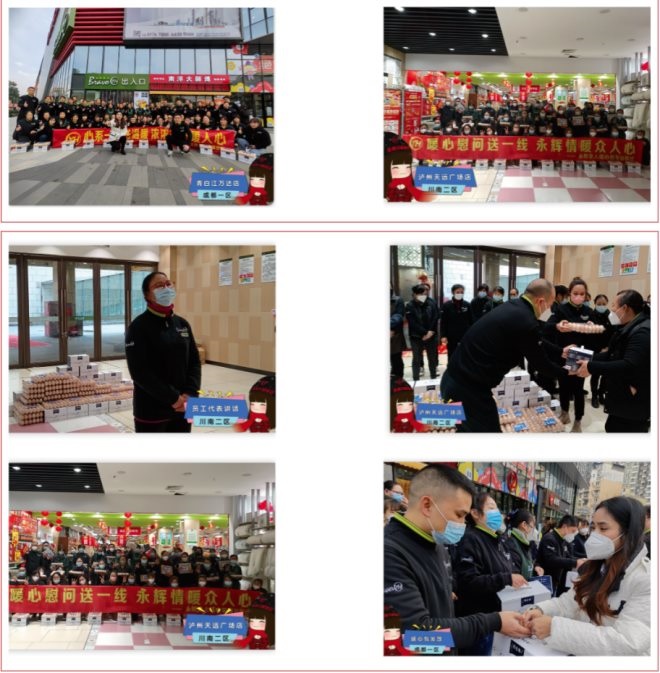 “感恩同行送溫暖,情系一線暖人心”貴州區(qū)的橫幅詮釋著公司對員工的關(guān)懷,也彰顯出了永輝濃厚的“家文化”。