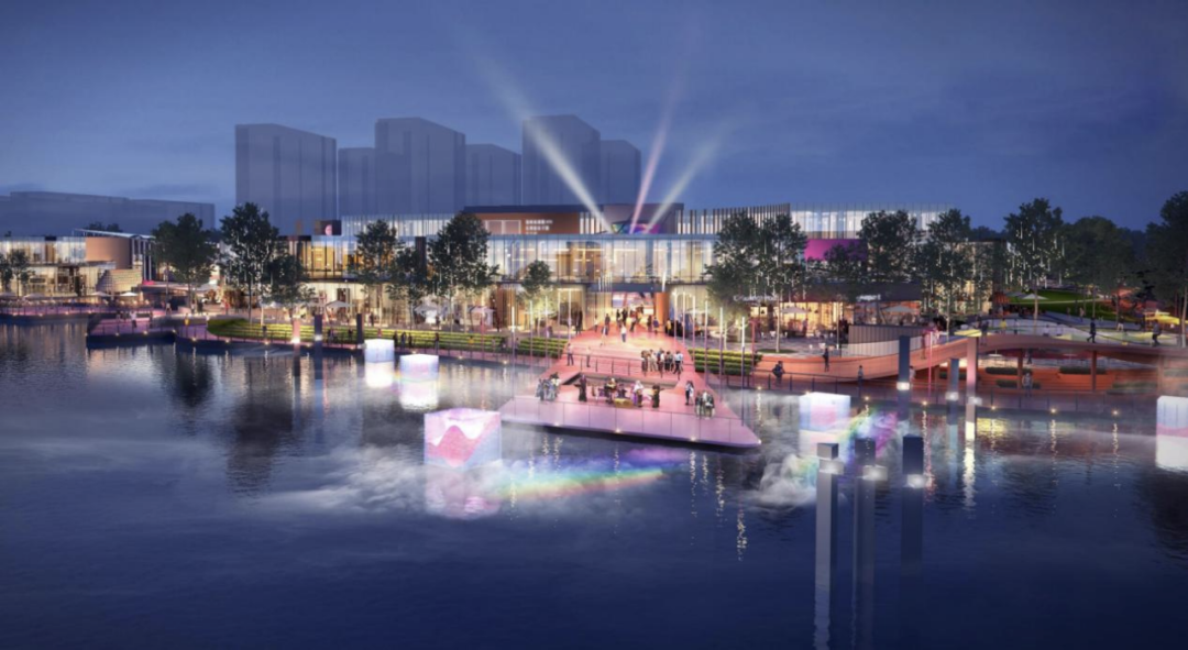 結(jié)合濱水特色,于附近水面延伸打造“水舞臺(tái)”及各類(lèi)水上藝術(shù)裝置,成就“濱水劇場(chǎng)與休閑水岸”;與此同時(shí)重點(diǎn)塑造夜間亮化系統(tǒng),使這座星悅薈成為夜幕下“太湖上最亮的一顆星”。