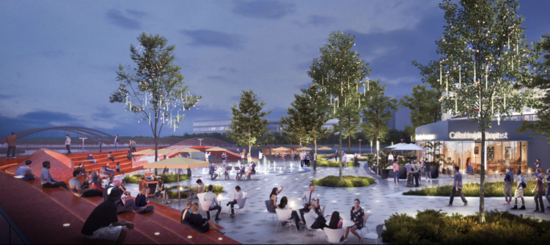 在硬件方面,取法于山水并結(jié)合區(qū)位特點(diǎn)精心構(gòu)建了“島嶼山丘、漂浮云朵、花園中庭、水岸客廳、林下集市”五大特色空間,同時(shí)引入諸如裸眼3D大屏、鏡面水景、大型藝術(shù)裝置等時(shí)下最新奇、熱門(mén)的創(chuàng)意互動(dòng)設(shè)施;