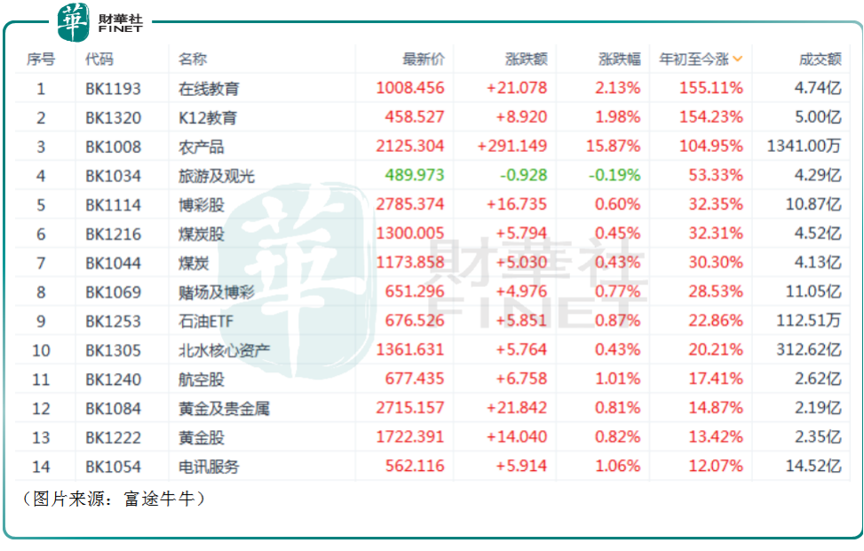 不過,此前因雙減而遭遇重創(chuàng)的在線教育板塊卻迎來了股價上的復(fù)蘇,整體漲幅居所有板塊最前列,漲幅高達21%。