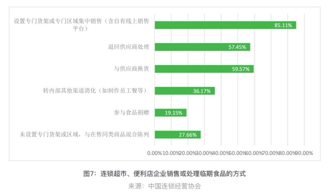 協(xié)會調(diào)研顯示,目前連鎖超市、便利店處置臨期食品的方式主要包括三類: