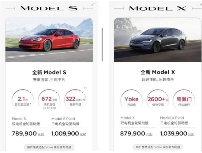 圖片Model S和Model X的國內(nèi)售價(jià)