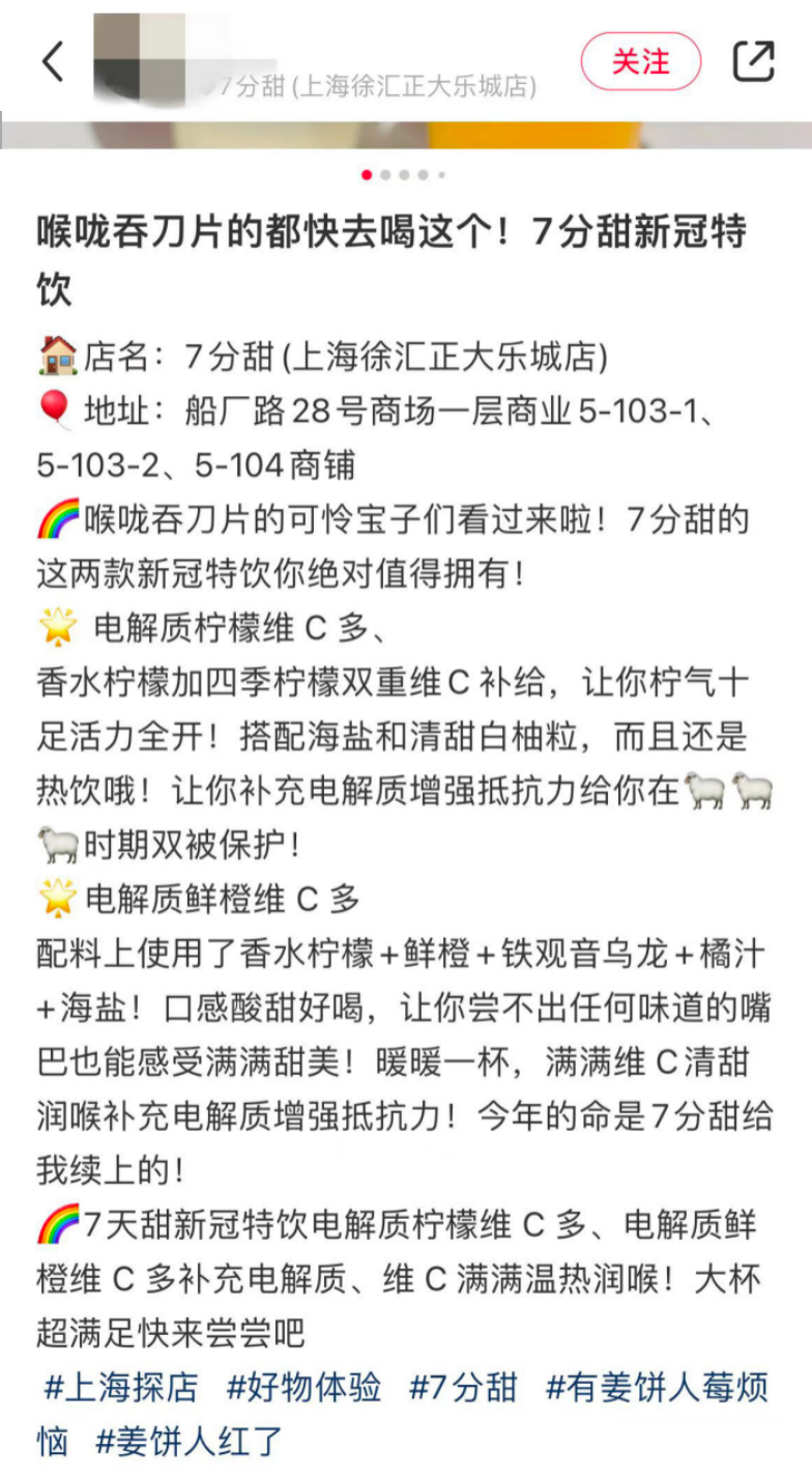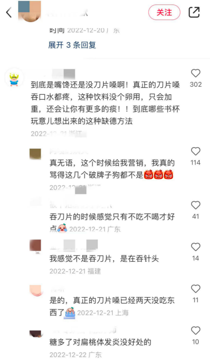 品牌的謹(jǐn)慎不無(wú)道理。對(duì)于“新冠特飲”的宣傳,小紅書(shū)相關(guān)帖子的評(píng)論區(qū),有人提出了質(zhì)疑。他們認(rèn)為,這些飲品不僅沒(méi)用,含有的糖分還會(huì)加重喉嚨生痰。