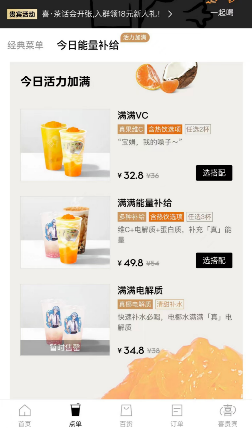 圖 / 喜茶上線的含維C、電解質(zhì)、蛋白質(zhì)的飲品