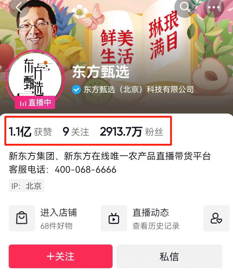 截止發(fā)號(hào)前,東方甄選的抖音賬號(hào)粉絲已達(dá)到2913.7萬(wàn)。而值得注意的是,除“東方甄選”之外,“東方甄選美麗生活”“東方甄選之圖書”“東方甄選將進(jìn)酒”等賬號(hào)也陸續(xù)亮相,嘗試打造直播矩陣,這也進(jìn)一步體現(xiàn)了新東方將全力押注直播電商的決心。