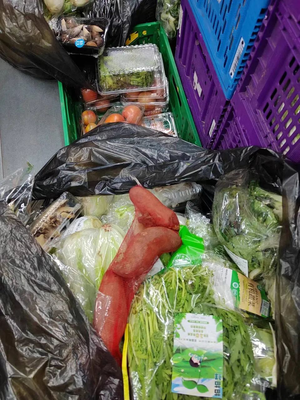 這里的商品排布不像普通門店那樣井然有序。蔬菜、水果、盒裝牛肉、菌菇,橫七豎八地躺在各自的區(qū)域,等待有緣人在保質(zhì)期倒數(shù)到0前把它扔進(jìn)它該去的地方——鍋或者垃圾桶。
