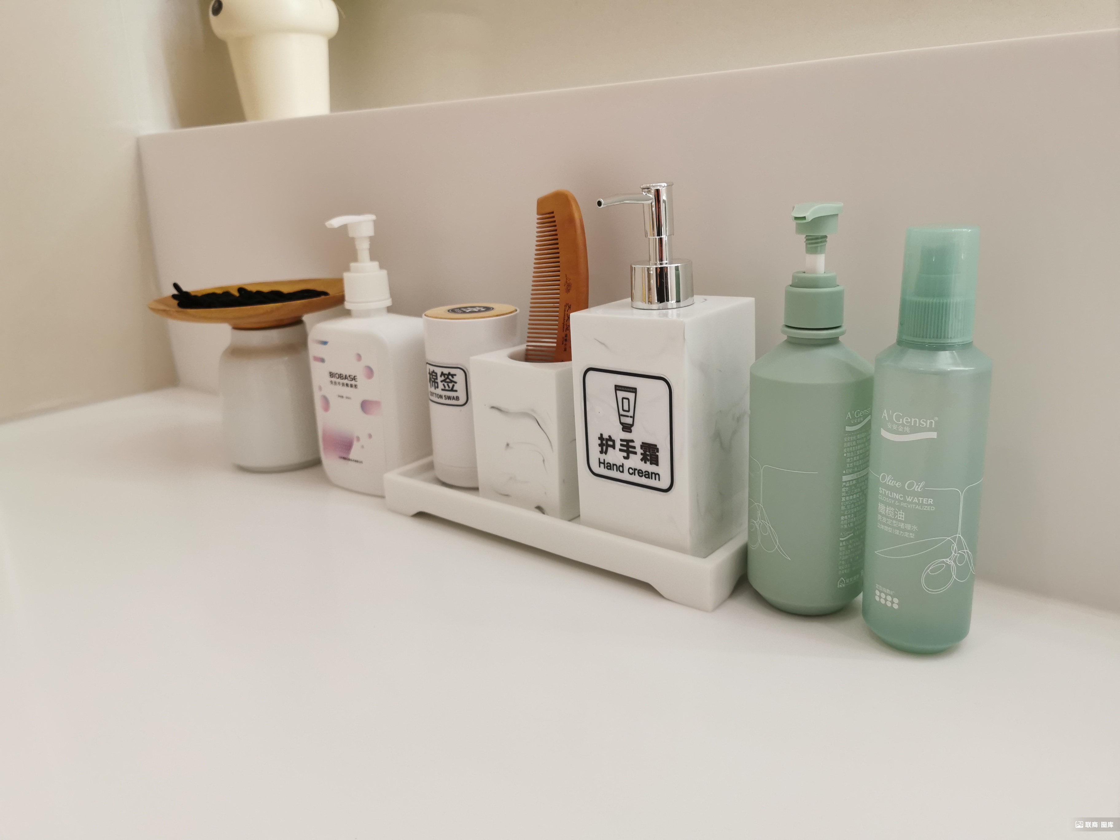 無障礙衛(wèi)生間特別設(shè)計了觸控式開關(guān)門、多方位扶手等人性化設(shè)施,讓特殊的群體在相同的環(huán)境下,感受到被呵護的感覺。在女生衛(wèi)生間內(nèi),還配備有化妝區(qū),化妝臺上配置高顏值化妝鏡、免洗手消毒凝膠、亮發(fā)定型啫喱水、護手霜、梳子、棉簽等等,甚至還貼心地準(zhǔn)備了束發(fā)帶。
