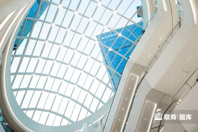 天使城延續(xù)了胖東來自然淳樸的風(fēng)格,采用了明亮的色調(diào)和金屬質(zhì)感的線條,配合直通頂層的空間設(shè)計,讓整個商場的空間感和視野非常開闊。樓層線條層疊流動,宛如云層涌動,配合玻璃天幕,盡享自然流光。