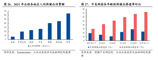 歐睿數(shù)據(jù)顯示,2021年中國(guó)保健品市場(chǎng)規(guī)模達(dá)到3289億元,2011-2021 年 CAGR為9.45%,預(yù)計(jì)2026年達(dá)到約5178億元,且對(duì)比海外,中國(guó)大陸人均保健品消費(fèi)額只有19.42 美元,全面低于美日等發(fā)達(dá)國(guó)家,不足中國(guó)香港的1/2、不足中國(guó)臺(tái)灣的 1/3,長(zhǎng)期滲透率提升空間較大。