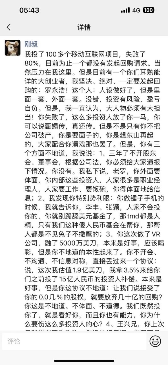 投資人鄭剛炮轟羅永浩,誰(shuí)是誰(shuí)非?