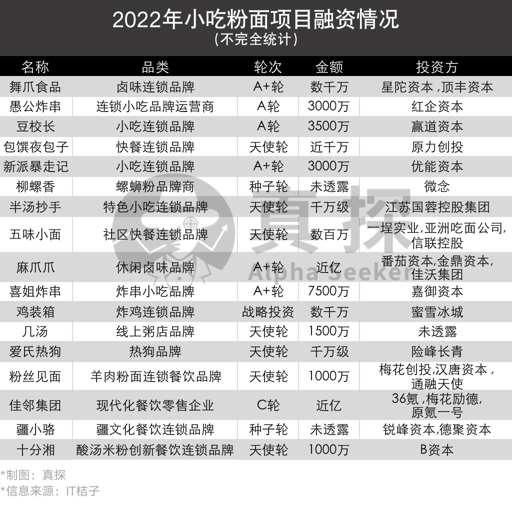 相比于曾經(jīng)動輒融資幾個億的“直營餐館”,小吃粉面項目在2022年有更加誘人的特性。