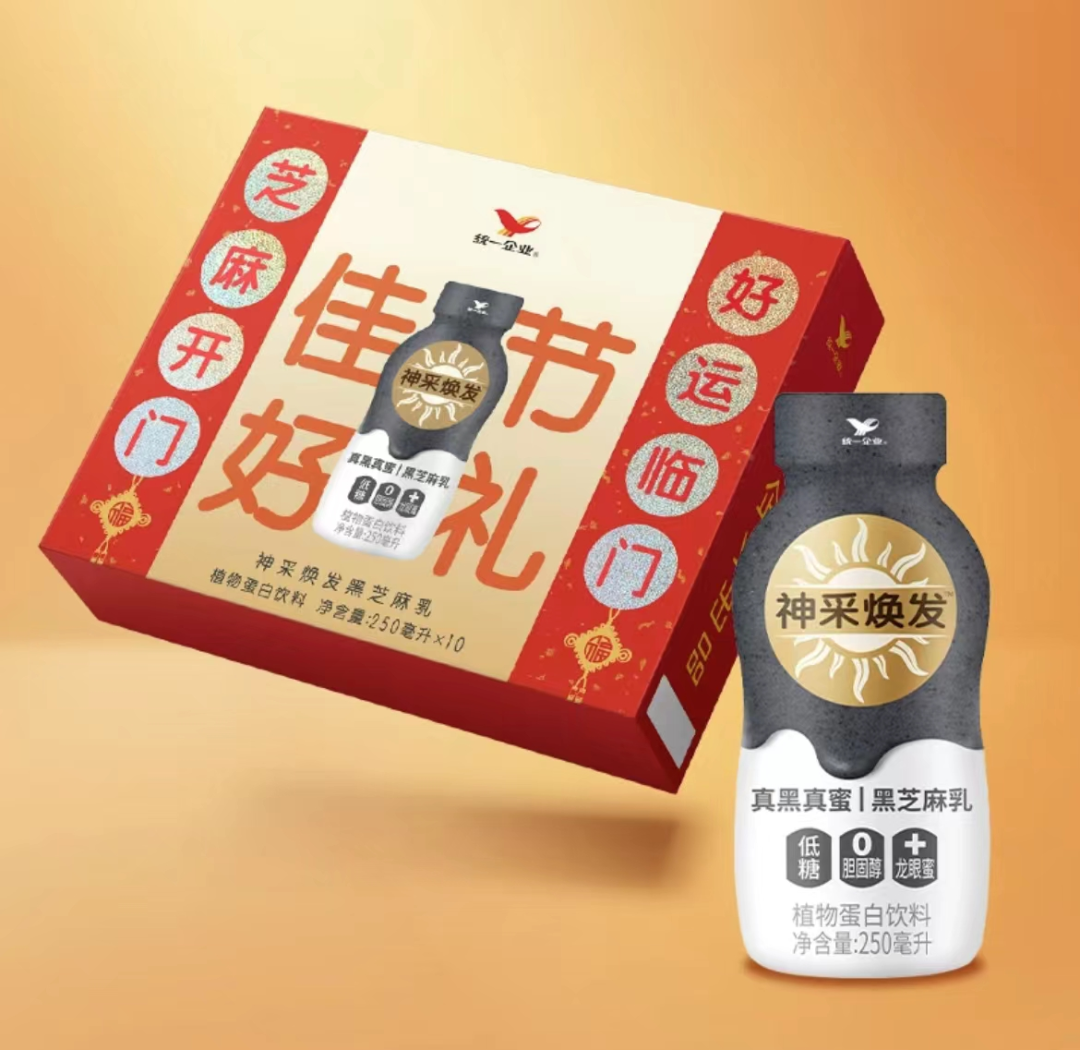 1月1日,統(tǒng)一就在其天貓官方旗艦店中上架了名為“神采煥發(fā)”的黑芝麻乳,從官方公布的資料顯示,“神采煥發(fā)”黑芝麻乳每瓶中涵蓋超過3200顆的黑芝麻,不含牛奶的同時,特別添加了龍眼蜜和燕麥粉,具有低糖和0膽固醇的健康特征,也適合乳糖不耐受人群?诟斜合銤庥,早餐、下午茶等場景下均可飲用。