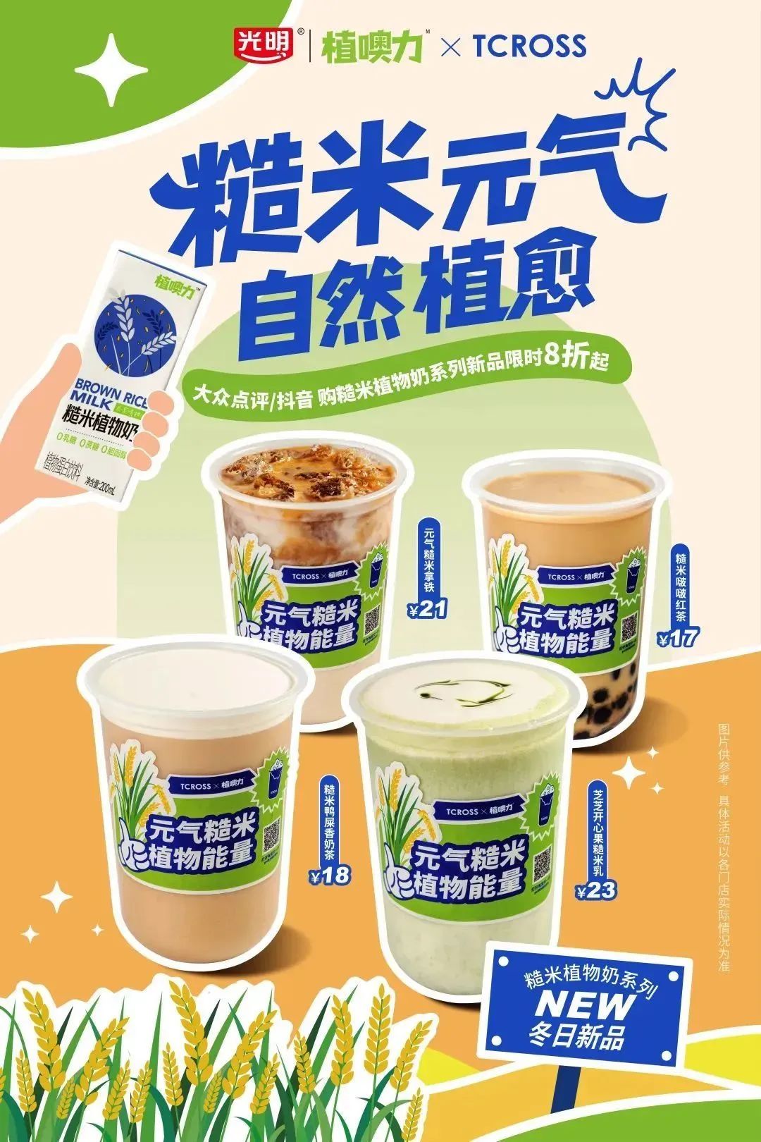 1月4日,光明植噢力攜手交茶點聯(lián)手打造的“糙米植物奶系列”新品正式上線,給你冬日“植愈”、元氣滿滿!