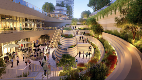此外,項(xiàng)目通過(guò)極具視覺(jué)沖擊力的“♪”音符形態(tài)建筑,塑造城市記憶IP地標(biāo);8000m2穹頂天幕+5000 m2寶藏城市露臺(tái),勾連京西首個(gè)開(kāi)放式“云中花園”;錯(cuò)落有致的雙下沉廣場(chǎng),北側(cè)營(yíng)造面向家庭客群的自然游憩“綠野親子樂(lè)園”,南側(cè)營(yíng)造具有城市微風(fēng)峽谷沉浸式氛圍的“京西騎行驛站”,成為京城騎行愛(ài)好者和年輕客群的運(yùn)動(dòng)社交圣地;后續(xù)依托大悅城商業(yè)重度運(yùn)營(yíng)能力,活化多元目的地組合,形成“京西社交紅場(chǎng)”。