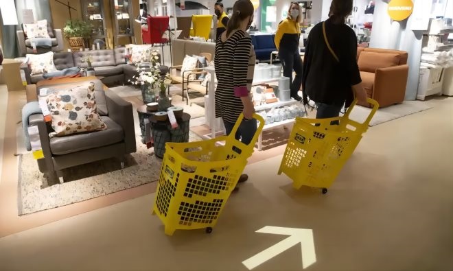 宜家門店的步行路徑有跡可循,沿著一個方向不斷行進(jìn),幾乎覆蓋所有的商品區(qū)!氨娝苤,對于顧客而言,時間就是金錢,”普卡雷利說道,“地板上有箭頭指引,并有相應(yīng)的商店地圖可供參考!
