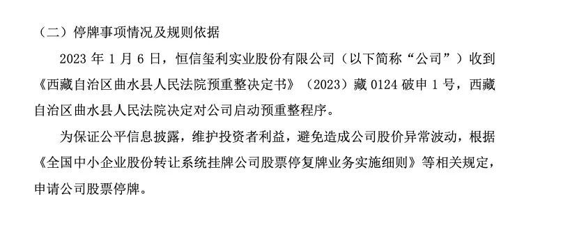 1月4日,I Do關(guān)聯(lián)公司恒信璽利實(shí)業(yè)股份有限公司(以下簡稱“恒信璽利”)被申請破產(chǎn)重整,申請人為北京艾貝利特服裝服飾有限公司,經(jīng)辦法院為西藏曲水縣人民法院。目前法院決定對公司啟動預(yù)重整,恒信璽利股票從1月9日起停牌。