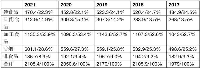 羅森的總體毛利率水平在30%至31%之間,從數(shù)據(jù)結(jié)構(gòu)看,受到了包括香煙在內(nèi)的外購加工食品的毛利影響。