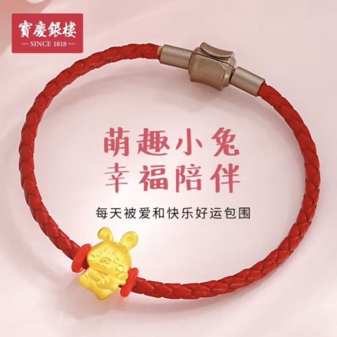 黃金轉(zhuǎn)運(yùn)珠已成為今春最火的新年禮之一。寓意祈福、保平安的轉(zhuǎn)運(yùn)珠飾品無論是送長輩、伴侶、朋友、孩子都很合適。黃金轉(zhuǎn)運(yùn)珠也成為京東新百貨的熱銷爆品之一。寶慶銀樓這款萌趣小兔轉(zhuǎn)運(yùn)珠手鏈,年味兒十足,其憨態(tài)可掬的生肖小兔子造型生動(dòng)、可愛,又有著純潔、機(jī)智、勇敢的象征,美好寓意疊加,表達(dá)了送禮人的祝愿與期許。