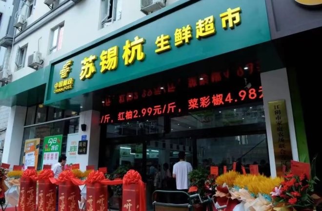 9月21日,中國(guó)郵政在無(wú)錫江陰市開業(yè)了一家生鮮超市——“蘇錫杭生鮮超市”。