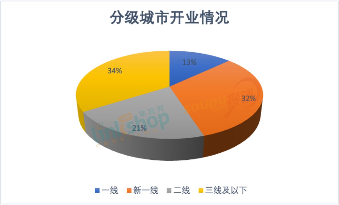 15個新一線城市開業(yè)總數(shù)量高達114個,占總開業(yè)數(shù)量比約32%,與2021年持平;