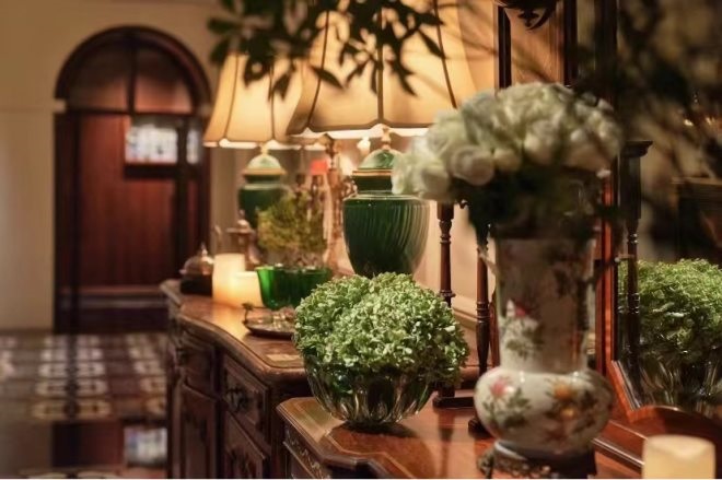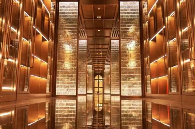 西南首店的裝修可以用“富麗堂皇、低調(diào)典雅”八個字來概括。走廊充斥著吊燈泛出的暖黃色燈光,與旁邊的一排墨綠色擺件相襯,典雅奢華;用餐區(qū)桌椅采用的是紅色,桌布則挑選的是白色,地板磚采用的是深咖色,三種顏色相得益彰;除了功能分區(qū),一些小角落也可以看出布置的用心程度。