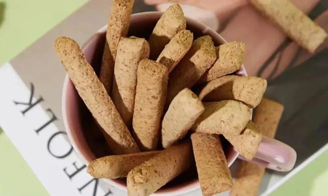 以“小鋼筋”全麥餅干為例,品名自帶流量,達人帶貨時也容易延展想象力二創(chuàng)。“小鋼筋”敲擊盆碗的聲音,最大程度展現餅干的“脆”, 極其適配短視頻特性,在抖音搜索#小鋼筋話題,迄今播放量超9000萬次。