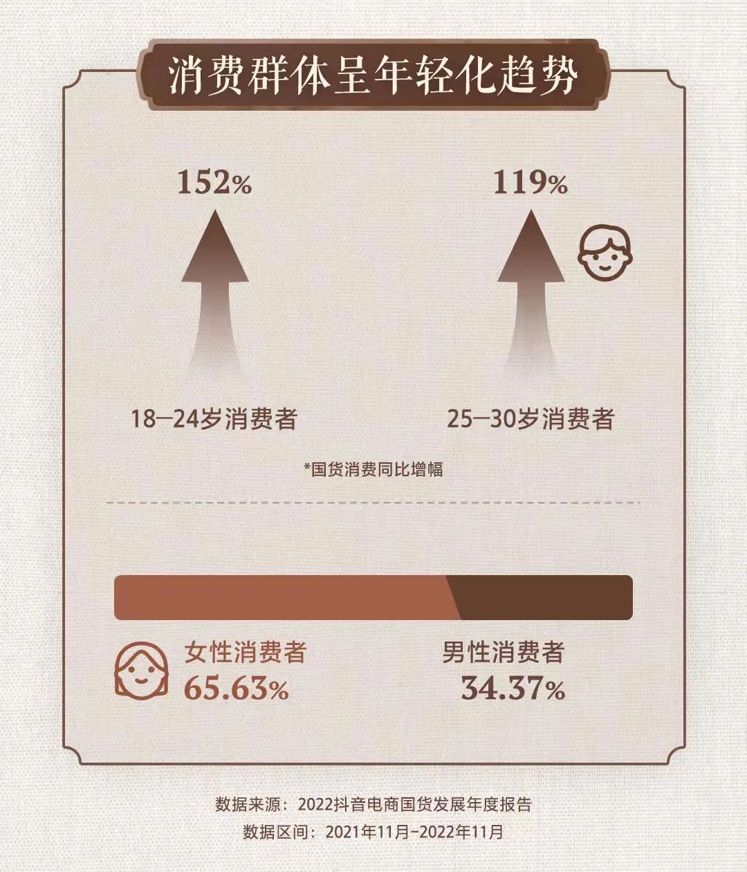 不斷完善基礎設施,搭建內容與電商生態(tài),抖音電商不但逐漸成了傳統文化發(fā)揚者和新品牌的重要孵化場,還架設了國貨品類與年輕客群間的“快車道”。