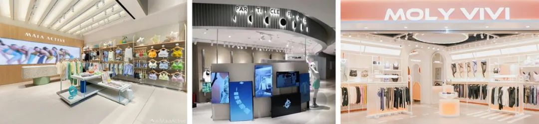從左到右依次為MAIA ACTIVE、粒子狂熱和MOLY VIVI的門店, 圖源品牌微博、大眾點評、官網(wǎng)