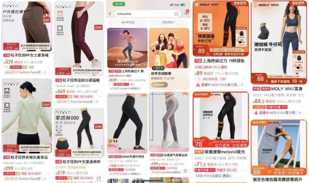 傳統(tǒng)運動服飾品牌,如阿迪達(dá)斯、耐克、安德瑪、迪卡儂,或是李寧、安踏,都推出了自己的瑜伽服飾,但消費者反響平平;新興品牌如MAIA ACTIVE、粒子狂熱(Particle Fever)、VFU等,正快馬加鞭地試圖在市場中占有一席之地;此外,這些品牌的代工廠們也不甘寂寞,在1688、快團(tuán)團(tuán)等平臺販賣出廠價的貼牌貨,在小紅書上收獲一波好評……