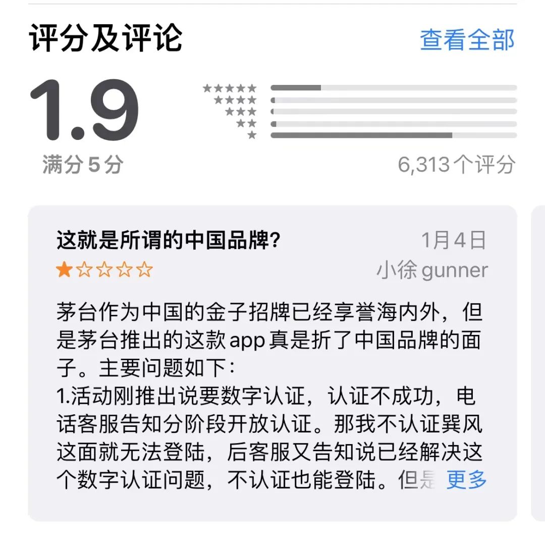 只不過這款app目前在蘋果分1.9,比東八區(qū)的先生還慘。收不到驗(yàn)證碼、游戲智障、不花錢不過關(guān),充值幾千幾萬的土豪韭菜才能進(jìn)入排名,茅臺(tái)的口碑還算不錯(cuò),這次吊胃口又倒胃口的購買操作算是砸了招牌。