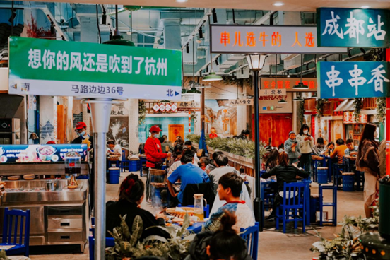 2022年9月開啟紫荊天街全新餐飲業(yè)態(tài)的升級之路,裝修極具在地文化特色的馬路邊邊串串,作為街邊店首入購物中心,將街頭文化和品牌理念結(jié)合融入天街在地文化營銷。