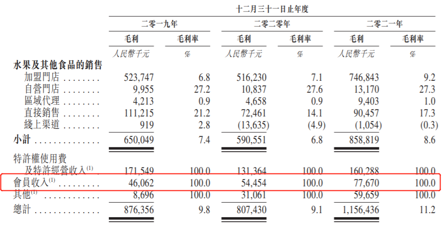 早在2018年,百果園做起了付費(fèi)會(huì)員生意。招股書(shū)顯示,百果園當(dāng)前會(huì)員數(shù)6700萬(wàn),其中只有78萬(wàn)名付費(fèi)會(huì)員。“會(huì)員店”計(jì)劃顯然不太成功,到2021年,百果園收入了0.7億會(huì)員費(fèi),占比不到1%;