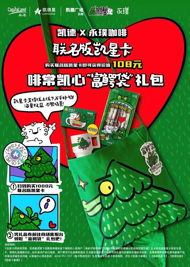 凱德X永璞咖啡聯(lián)名版凱星卡及啡常凱心“富鱷袋”吸引受眾打卡