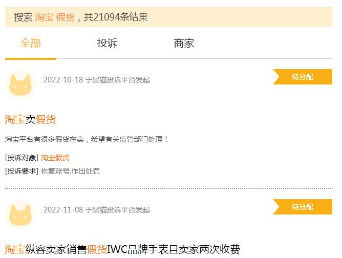 在2023年,在淘寶可能買到假貨并非個案——目前淘寶平臺涉嫌假貨現(xiàn)象有多泛濫,可以從黑貓平臺的投訴數(shù)據(jù)得到一定印證。