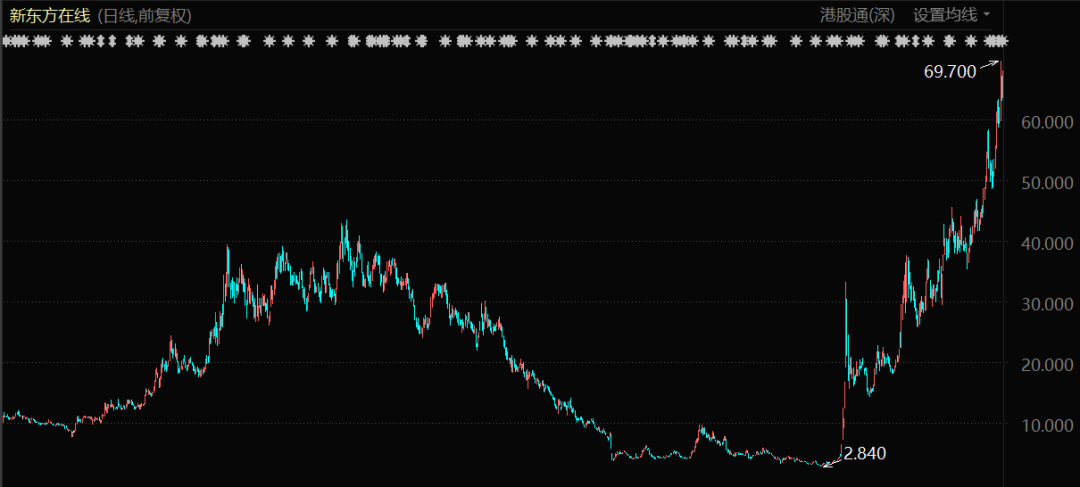 主播出圈帶火東方甄選,港股股價從2.8港元飆漲到69.7港元,新東方絕境逢生。