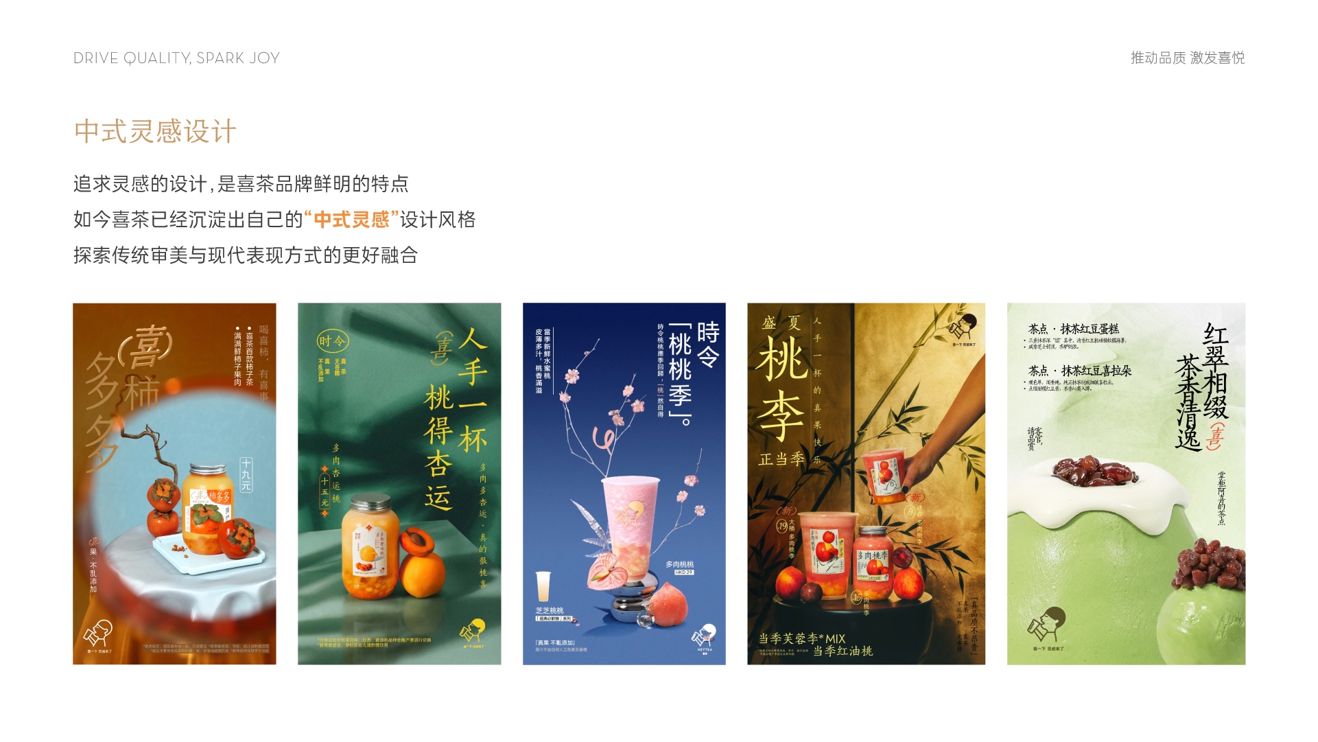 《深!愤@些特征和喜茶有著極高的契合度。從2012年開始,喜茶就堅持推出真品質的創(chuàng)新產品,并追求給消費者帶去“激發(fā)生活喜悅”的品牌體驗。而在設計上,喜茶持續(xù)探索中式審美的現(xiàn)代化表達。喜茶堅持不做模板化、空有皮囊和噱頭的設計,而是潛到中國文化的深處汲取精神內核和美學靈感,用年輕化的設計語言和方式,解構并重塑具有時代精神的中式靈感設計。