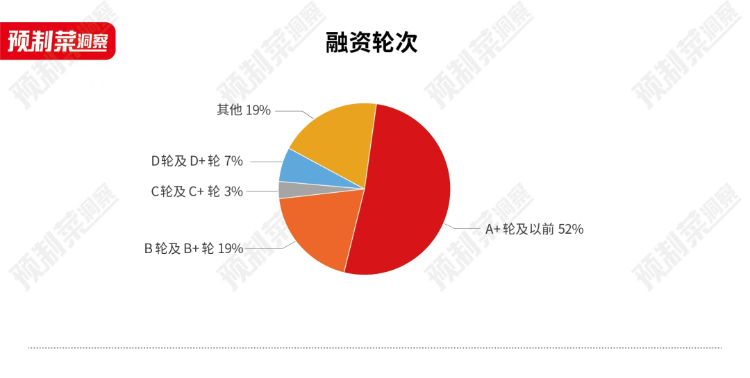 從融資輪次來看,2022年,預(yù)制菜賽道融資輪次在A+輪及以前的融資項(xiàng)目最多,共16起,占比約52%。C輪、D輪及D+輪融資輪次則較少。