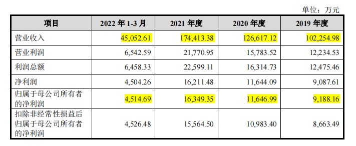 八馬茶業(yè)最新招股書(shū)顯示,2019年至2022年第一季度,公司實(shí)現(xiàn)營(yíng)業(yè)收入分別為10.23億元、12.66億元、17.44億元、4.51億元,歸母凈利潤(rùn)分別為9188.16萬(wàn)元、1.16億元、1.63億元和4514.6萬(wàn)元。