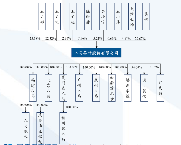 八馬茶業(yè)的實(shí)際控制人為王氏三兄弟——王文彬、王文禮和王文超。陳雅靜和吳小寧分別為為王文彬和王文禮的配偶,在本次發(fā)行前,這五人共計(jì)持有公司62.80%的股份。