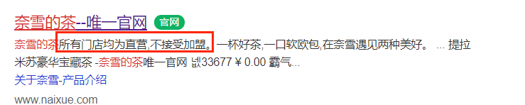 連奈雪的茶官網(wǎng)簡介在最首要的位置也說明了,其所有門店均為直營,不接受加盟。
